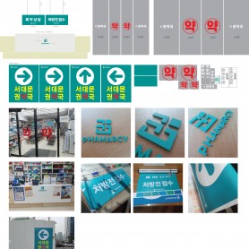 권약국 내부아크릴 싸인 및 표찰 유리창 선팅 및 외벽실…